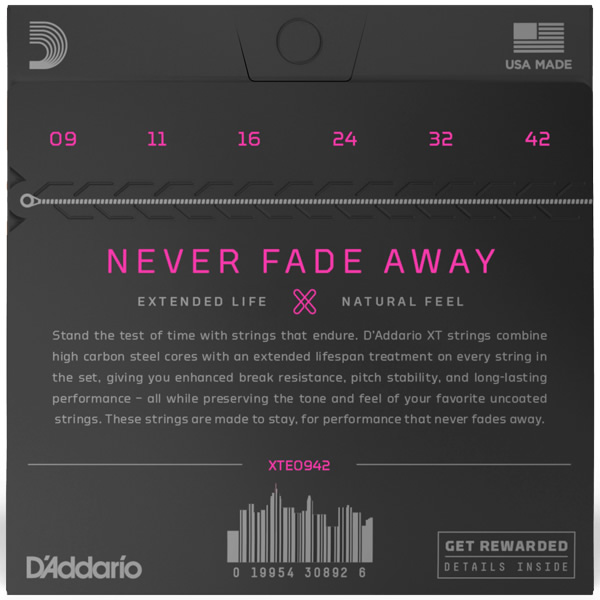 D’Addario XT je nova serija žica za električnu gitaru od poniklanog čelika, spoj najpopularnije Daddario legure za izradu gitarskih žica s naprednim tretmanom otpornosti na koroziju svake žice u kompletu, čuvajući prirodan ton i osjećaj “uncoated” žica.