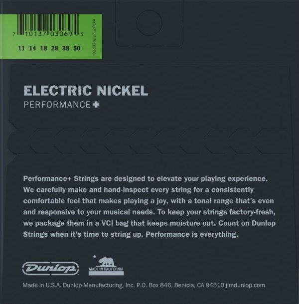 Jedinstvena kombinacija lijepih visokih, agresivnih srednjih i fokusiranih niskih tonova daje poseban zvuk Dunlop žicama za električnu gitaru. Dunlop-ov recept za balans među žicama i odziv savršen je za dinamične solo dionice, dok note u akordu zvone jasno bilo da su čiste ili izdistorzirane. Ovaj moćan zvuk isporučen je u žicama s niskom tenzijom s glatkim taktilnim osjećajem koji traje dugo.