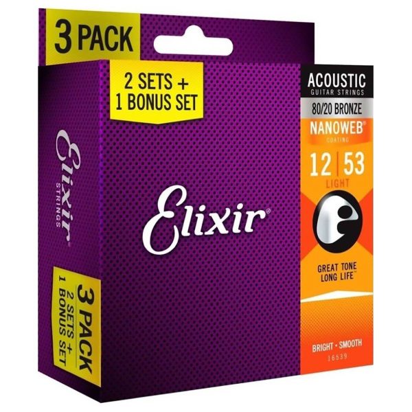 Elixir 3 PACK 12-53 Nanoweb 16539 žice za akustičnu gitaru