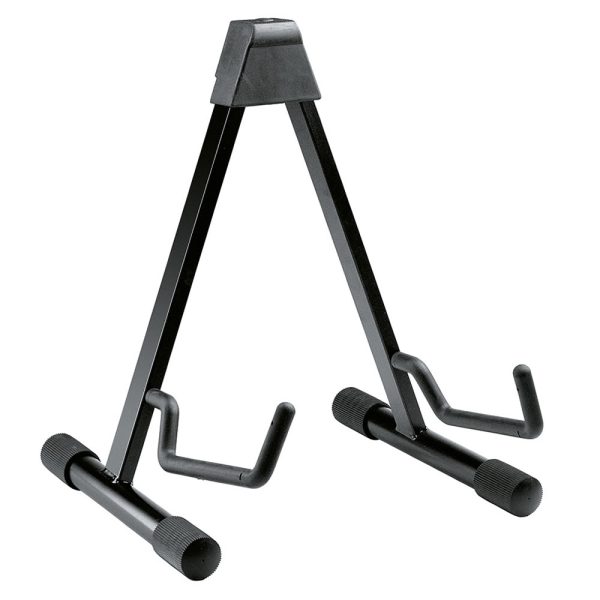 For acoustic guitars. Stable, sturdy, simple and easy to adjust and fold. Width adjusts from 220 to 350 mm. Support arms are covered with exclusive non-marring material to protect instrument finishes.