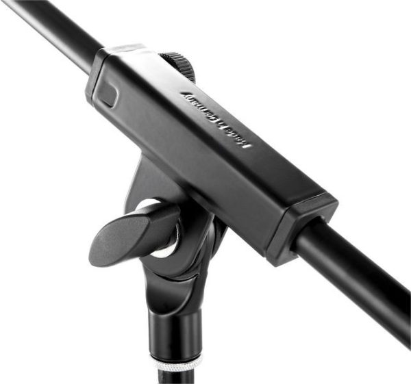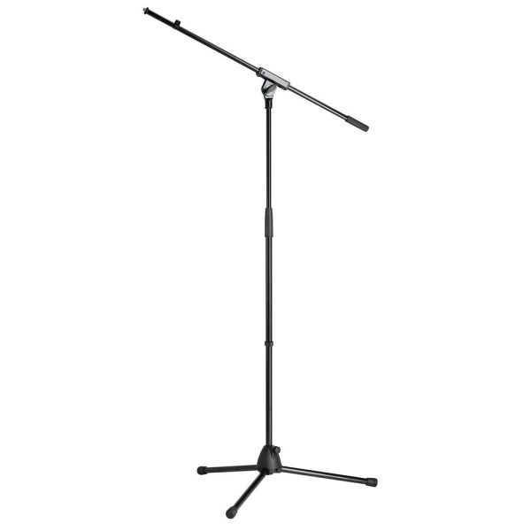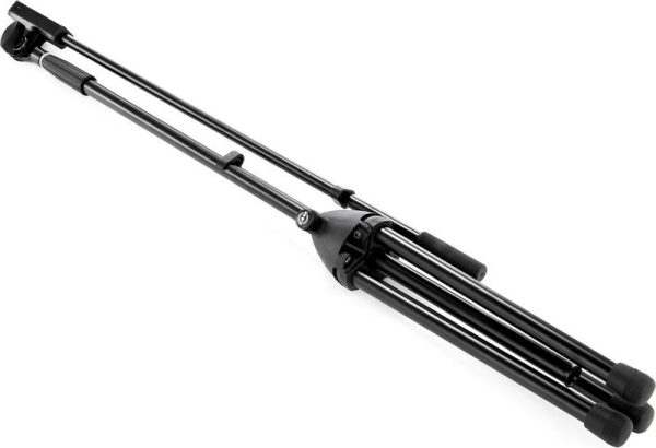 Inexpensive stand with professional features. Fiberglass-reinforced plastic base with foldable legs. Complete with boom arm.
