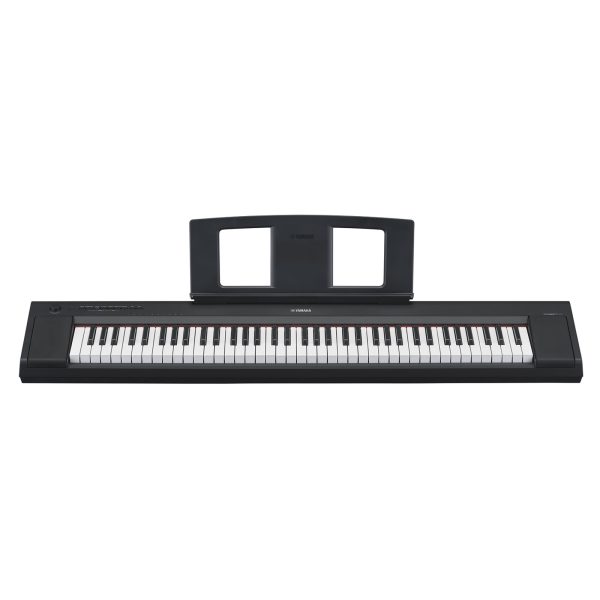 The 61-key keyboard (a conventional piano has 88 keys) is perfect for playing pop tunes or simple classical pieces. Although the keys have the same box shape as those on a piano, the keyboard has a lighter feel that makes it easy for beginning pianists to start, rather than the weightier feel of a standard piano keyboard. You can also use headphones with the NP-15 if you are worried about disturbing those around you with your playing.
